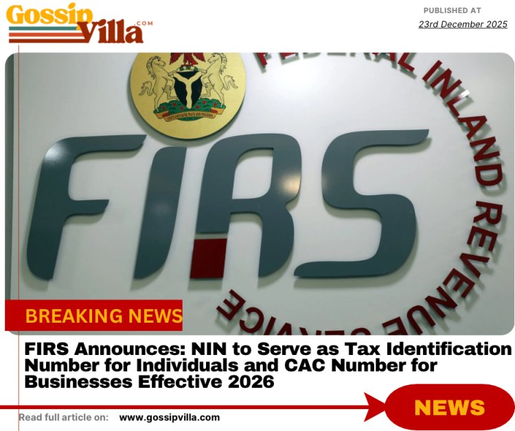 Discover how the Federal Inland Revenue Service (FIRS) has declared the National Identification Number (NIN) as the automatic Tax ID for individuals and the CAC registration number as the official tax identifier for businesses under the Nigeria Tax Administration Act effective January 2026.