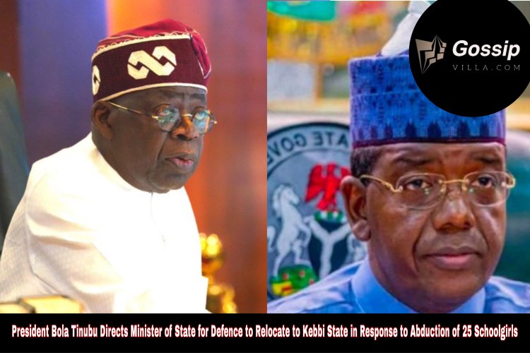 President Bola Tinubu has ordered Minister of State for Defence, Dr. Bello Matawalle, to immediately relocate to Kebbi State following the abduction of 25 female students from Government Girls Comprehensive Secondary School